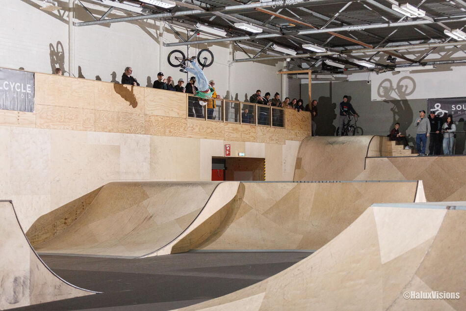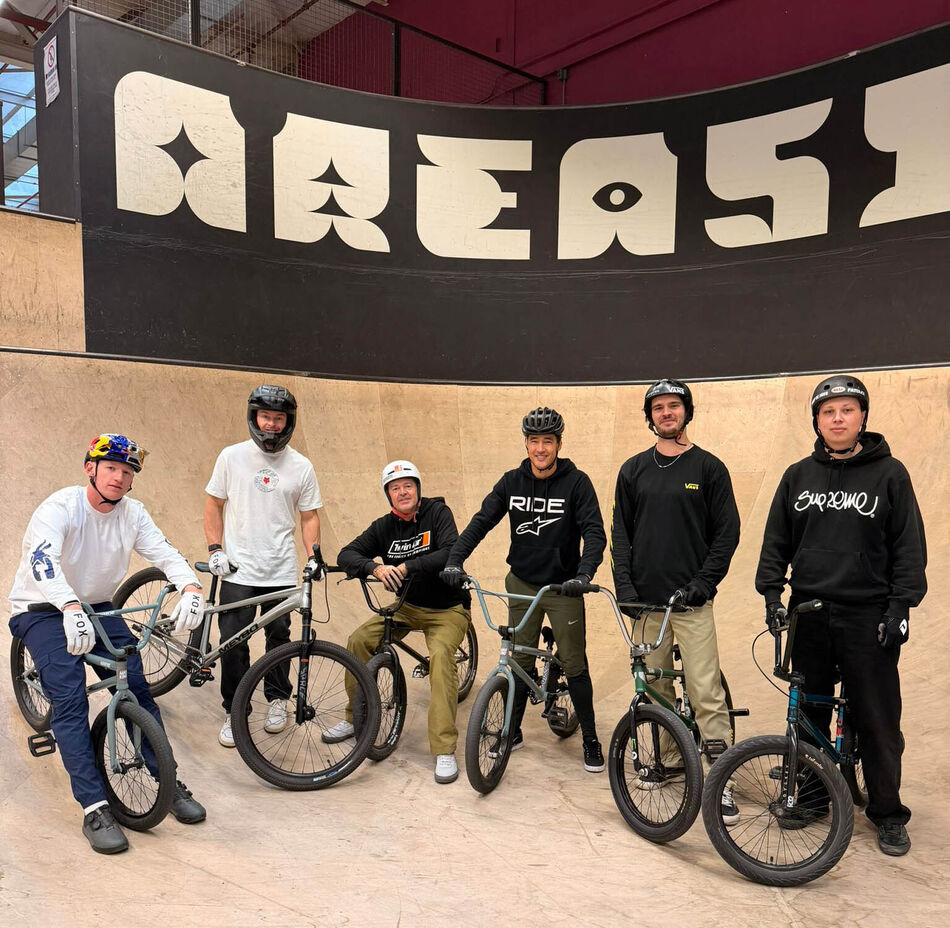 There has always been a connection between Motocross and BMX. In fact, motocross was the inspiration for BMX to start with. The handlebars, the bike control, the feeling, there are a lot of similarities, but also a lot of differences. Where the dirt bike gets controlled by the right wrist, the bike needs to be pedaled for speed and thrown around by all muscles in the body. 2024 FIM 250 World Champion Kay de Wolf and 2025 3rd place finisher in the MXGP class Glenn Coldenhoff joined a session at Area 51 in Eindhoven, set up by Philip de Jong. Bart Nelissen and his brother Mark joined as well as Tom van den Bogaard who managed to show a trick or two to the world class motocross racers.