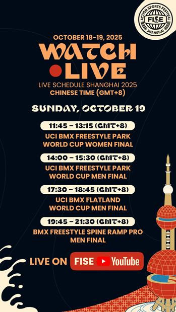 This year, FISE Shanghai will welcome the world’s top athletes across thirteen disciplines, including BMX Freestyle Park and BMX Freestyle Flatland, both part of the 2025 UCI BMX Freestyle World Cup. The program will also feature Breaking, Skateboarding Street, Scootering Street, and a range of exciting new additions: Roller Street, Scootering Park, BMX Street, Speed Climbing, BMX Spine Ramp, Scootering Spine Ramp, Roller Spine Ramp, and Skateboarding Spine Ramp.